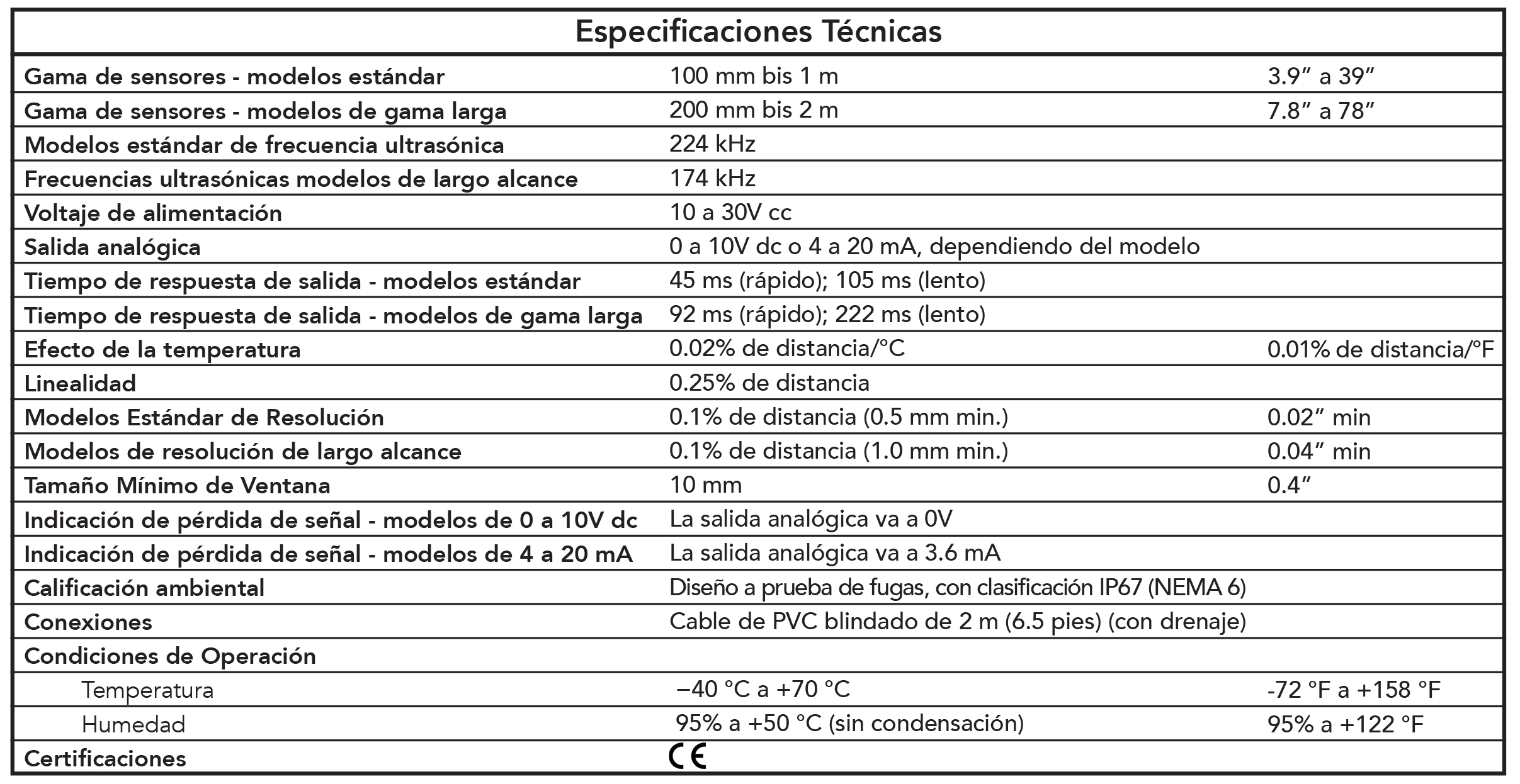 El sensor de diámetro ultrasónico Double E Group utiliza ondas de sonido para medir la distancia desde el sensor hasta el rollo de material. La distancia se calcula midiendo el tiempo que tarda el sensor en emitir la onda de sonido y luego volver a recibirla una vez que se ha reflejado en la superficie exterior del rollo. La distancia medida se escala para coincidir con una señal de salida analógica, ya sea 0-10 V o 4-20 mA, según el modelo del sensor. Este sensor es excelente para uso en aplicaciones de control de tensión de desenrollado de lazo abierto, aplicaciones de desenrollado de lazo suave y para el cálculo de compensación de inercia en aplicaciones de desenrollado y enrollado avanzado.