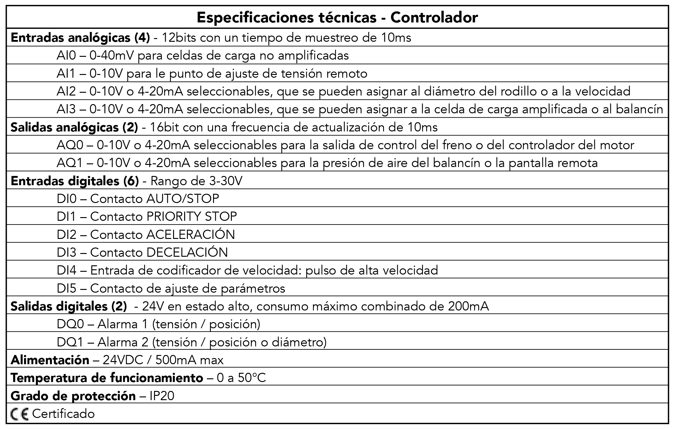 Especificaciones Técnicas